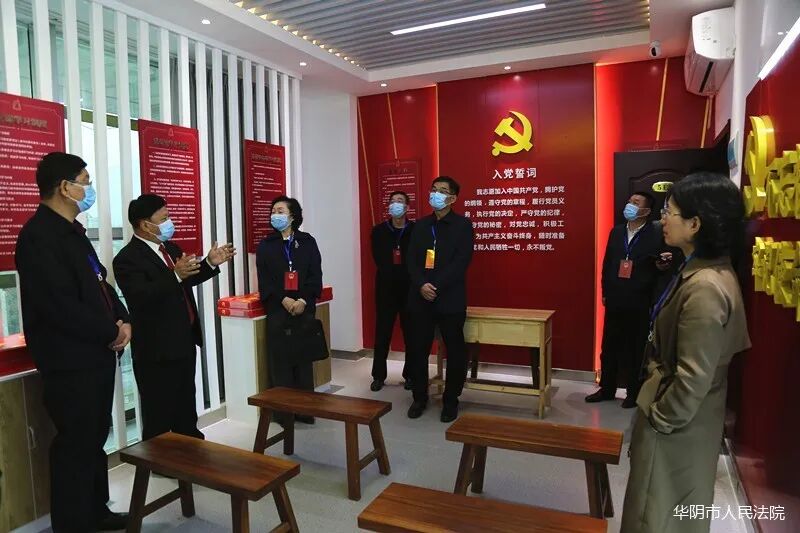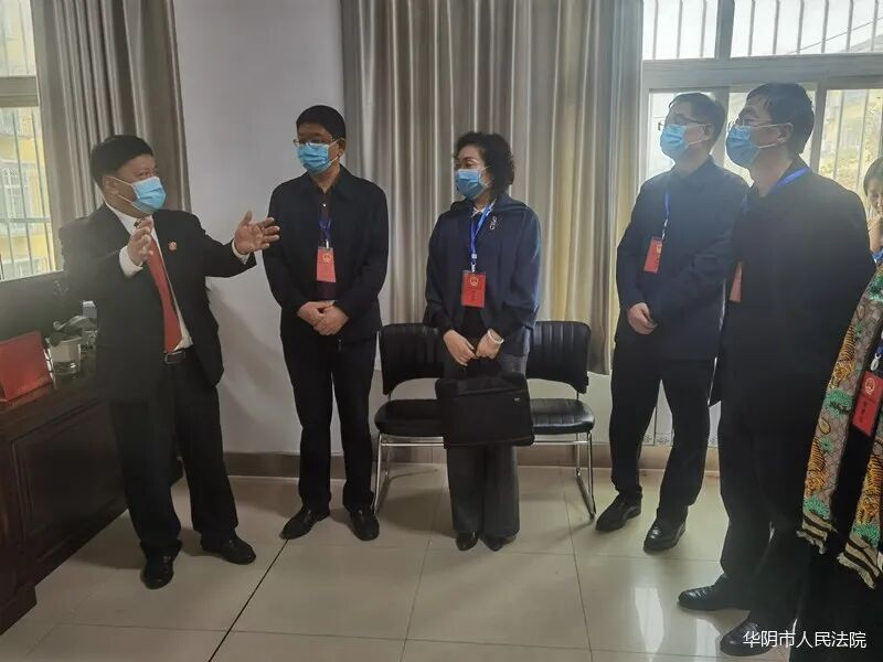 视察检查组一行首先来到华阴法院华西法庭,了解华西法庭的工作开展情况,随后,实地察看了华阴法院诉讼服务中心、家事审理中心、速裁中心、涉军维权中心、党员活动室、多功能会议室、科技法庭、健身房等
