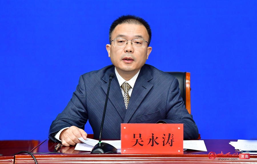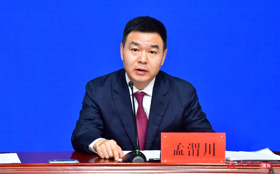 华阴市委副书记、市长孟渭川介绍华阴市“十四五”经济社会发展成就。记者 罗娜 摄